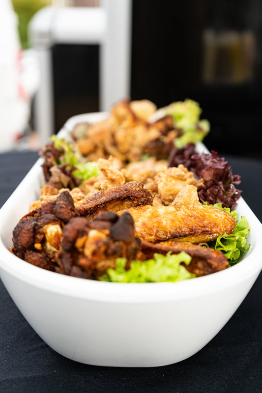 Kies je gerecht plain, op een broodje, met frietjes en/ of Moro rijst. Alle gerechten worden geserveerd met onze homemade pasta salade on the side. Top je gerecht af met onze heerlijke sauzen uit eigen keuken, wanneer je je bestelling komt afhalen.